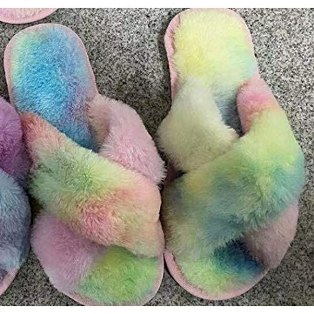 Womens fuzzy slippers sandals leopard plush open toe faux fur fluffy house flats slippers cross band soft warm comfy cozy bedroom slide slippers 4.4 out of 5 stars 2,374 $18.99 $ 18.